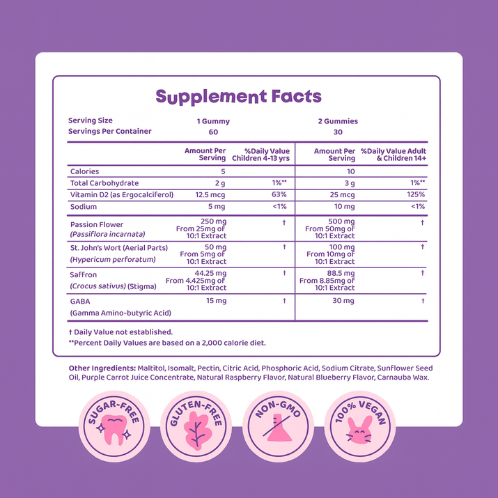 Answer 1: These gummies are formulated to support mood, focus, and stress relief. They contain premium saffron extract, known for its calming properties, helping you feel more balanced, clear-headed, and uplifted throughout your day.